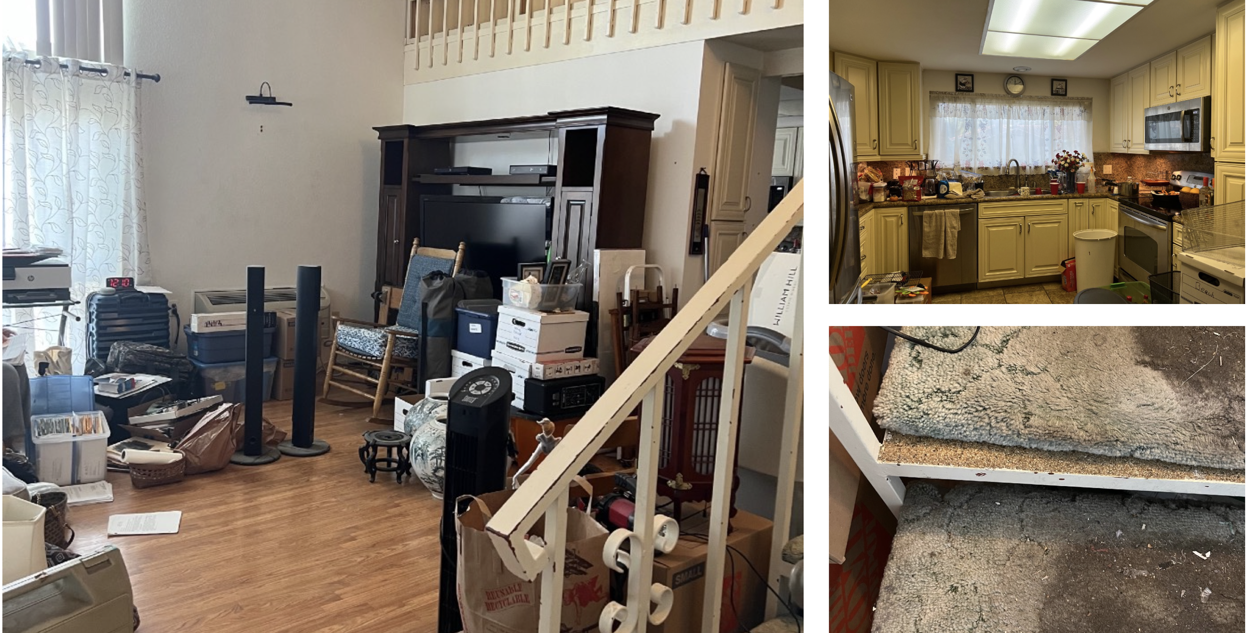We decided not to physically stage this house, for a couple of reasons..We cleaned and de-cluttered as much as possible, but the walls and floors were still in poor shape, and there were some lingering items that we did not have time to discard. Also, we could not ensure that the stager’s furniture would be safe in this still dingy space, and, anyway sometimes trying to pretend that an abused house is anything but what it is, is a waste of time. We sold the home As Is.